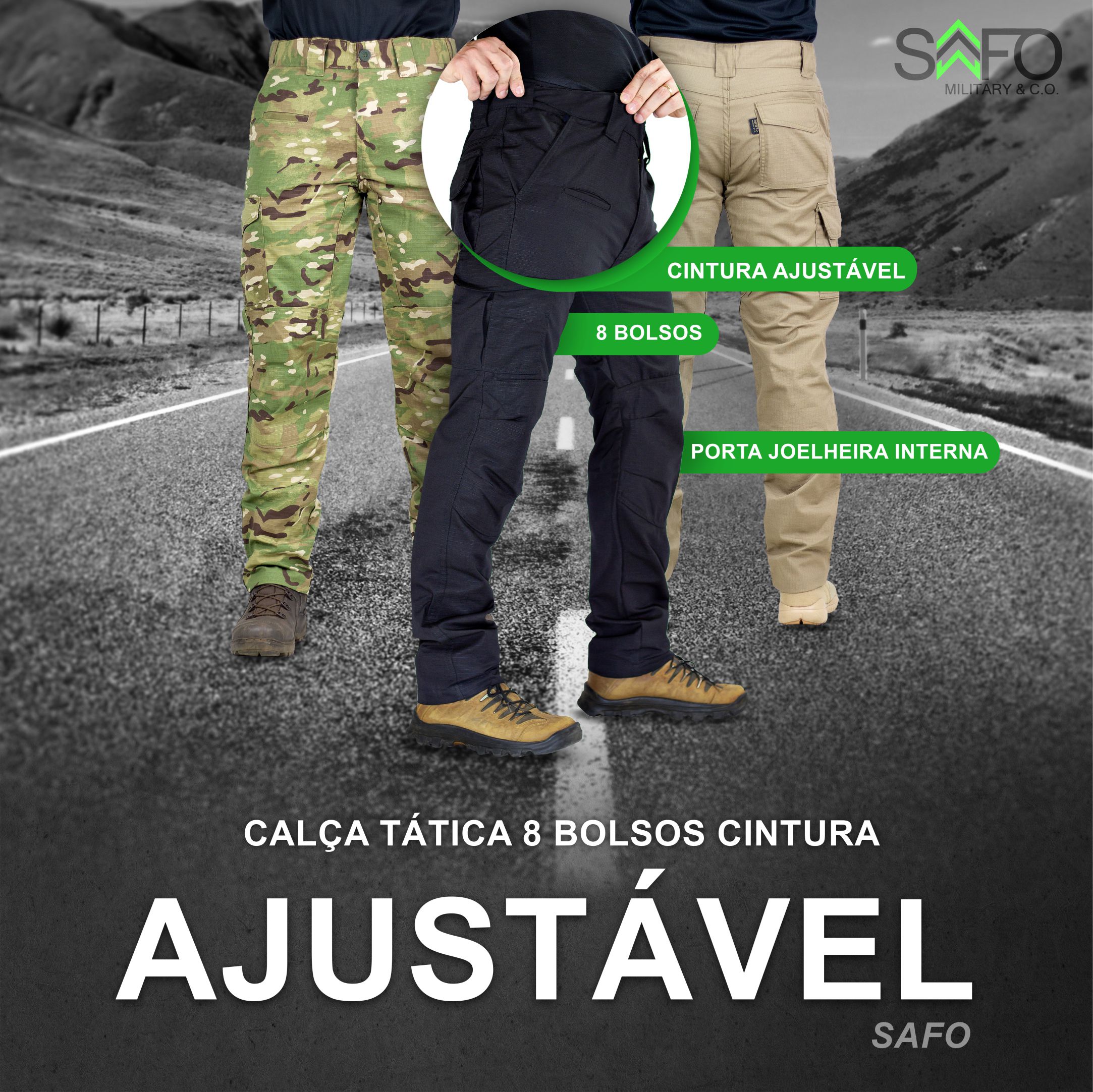 | Modelo | Calça 8 Bolsos com Ajuste |